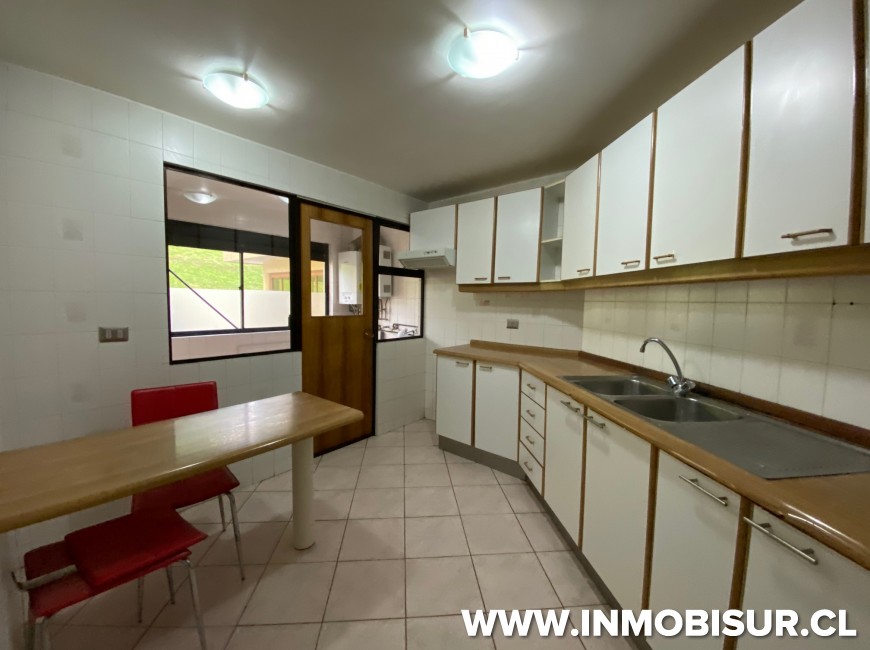 Su distribución interior contempla Hall de acceso, living comedor, amplia cocina amoblada con comedor de diario, loggia cerrada, 3 dormitorios, 2 baños, principal en suite. Además cuenta con pieza y baño de servicio.